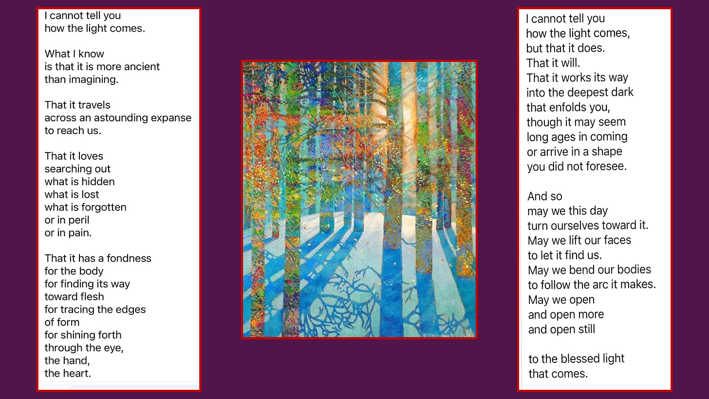 (Poem by Jan Richardson, Oil finger-painting by Iris Scott)